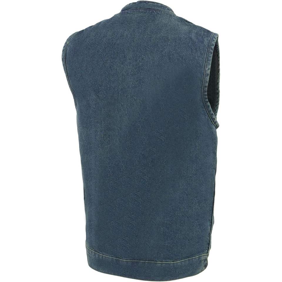 2025 Leather Men's Blue Club Style Vest with Hidden Zipper Concealed Snap Denim MDM3000