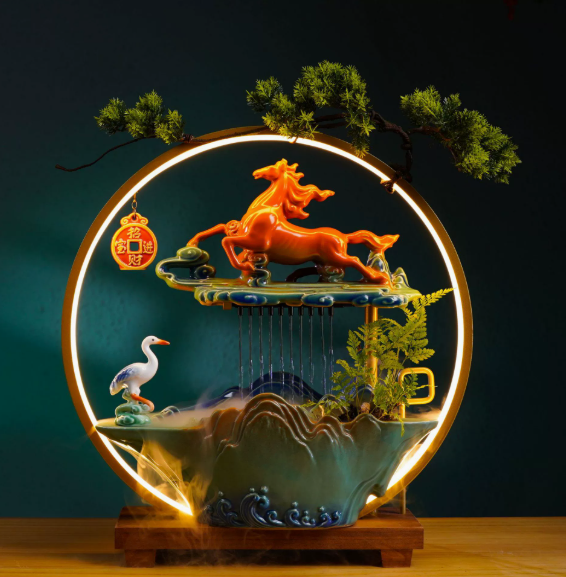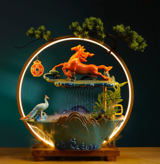 MD 2025 Long-lasting LED Light Backflow Waterfall Incense Holder Aromatic Sandalwood Zen Buddha Ceramic Censer Elegant Fountain