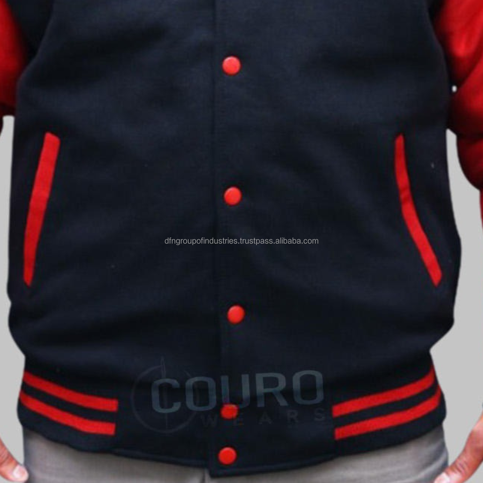 2025 Loose Fit Men's Cotton Fleece Varsity Jacket Stand Collar Black Red Letterman Design Breathable Warm All Sizes for Winter