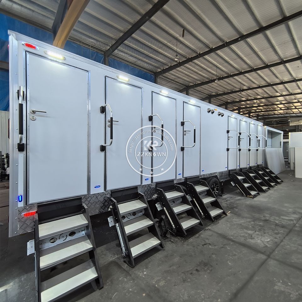 2025 Luxe Steel Automatic Moving Self Cleaning Mobile Blocks Shower Toilet Cabin Trailer For Disabled