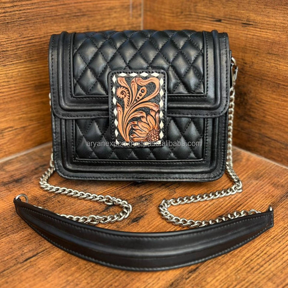 Product Name:Hand Tooled Quilted Chain Crossbody Bag