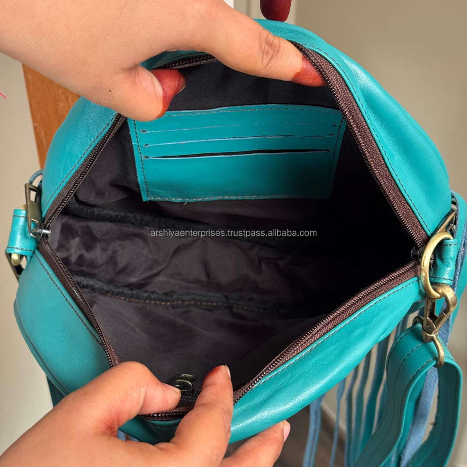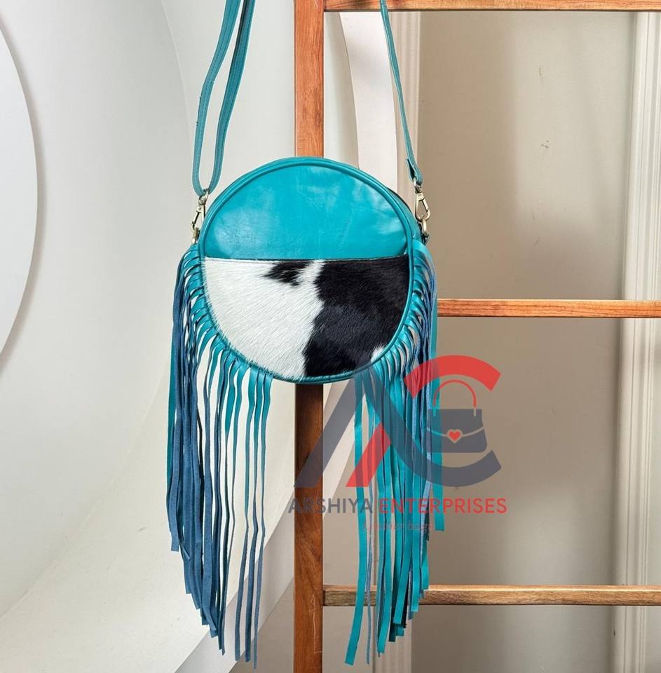 2025 Luxury Design Turquoise Round Fringe Western Charm and Modern boho Style Genuine Cowhide Leather Crossbody Casual Handbags