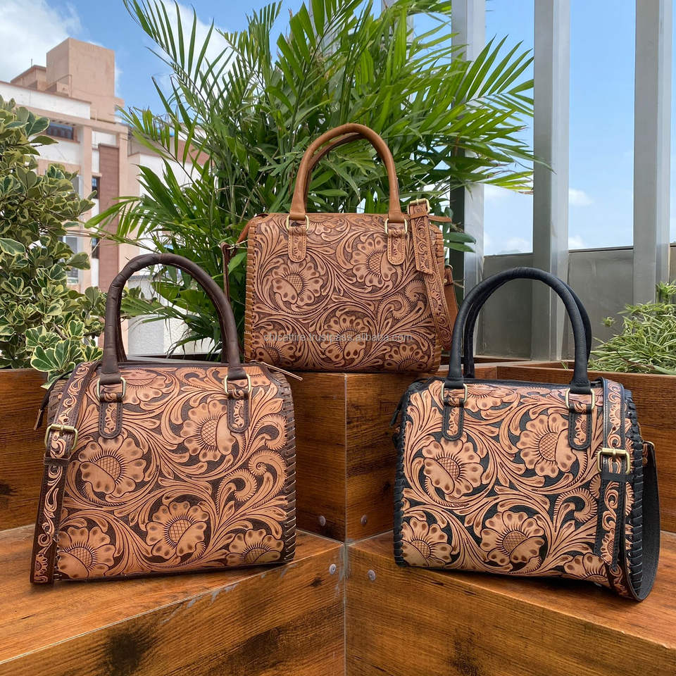 2025 Luxury Manufacturer Mini Hand Tooled Genuine Leather Designer Large Travel Duffle Bag for Men & Women Western Weekend Bag