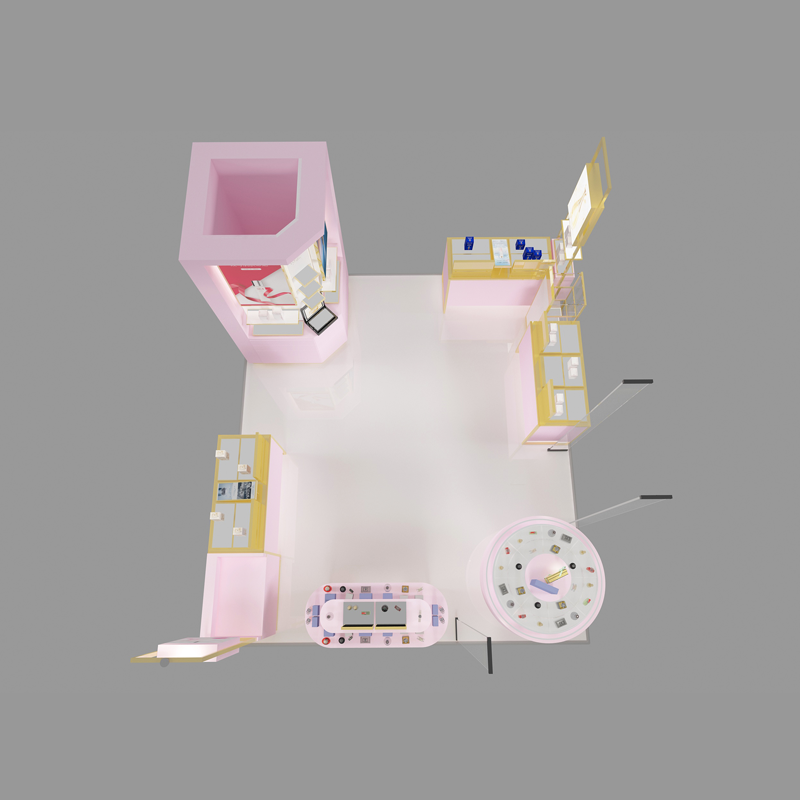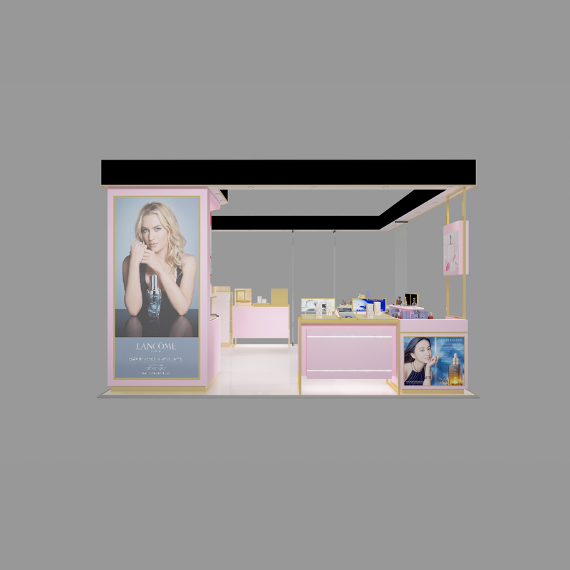 2025 Luxury Modern Customized for Shopping Mall Cosmetic Retail Store Counter Display Pink Makeup Furniture Kiosk Design