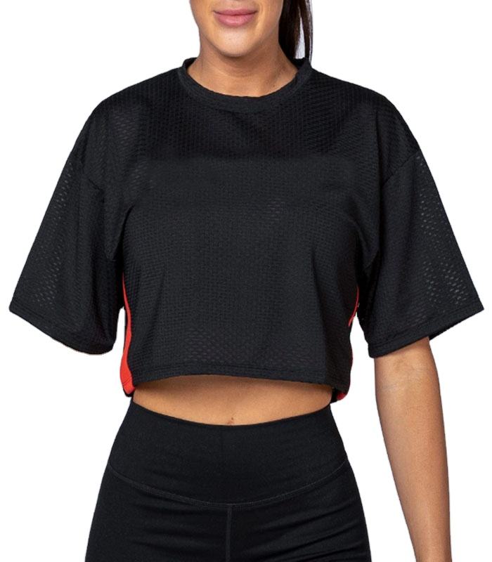 2025 Luxury Style Custom Cropped Soft and Thin Plain T Shirt Women Knitted Black Mesh Crop T Shirt Women
