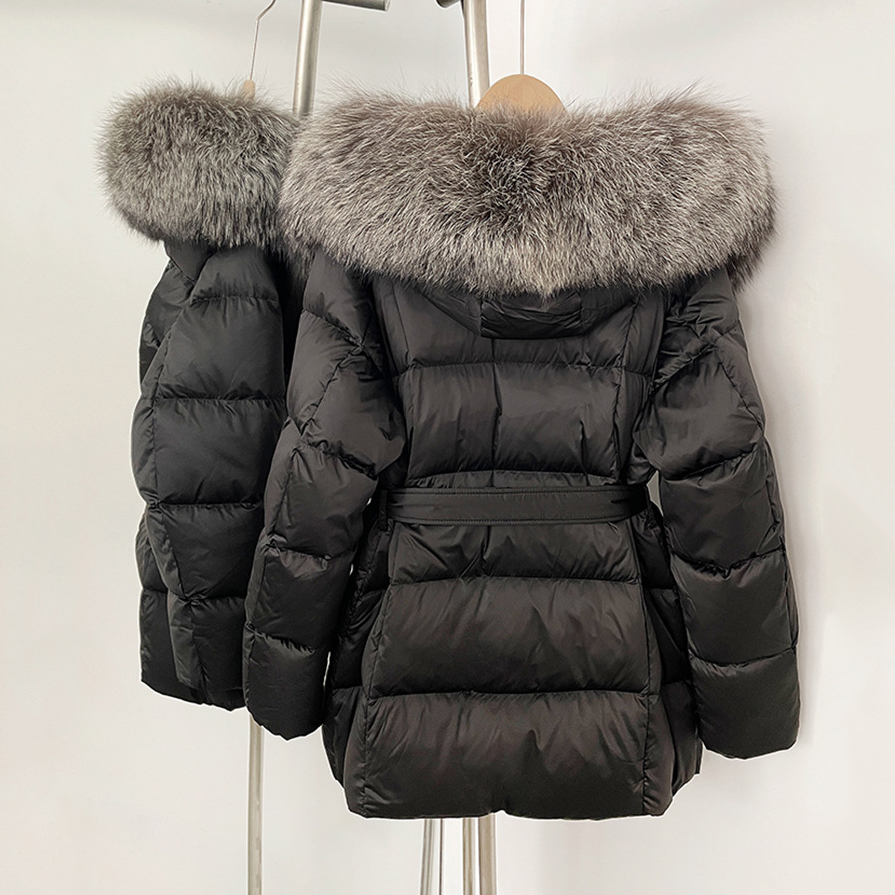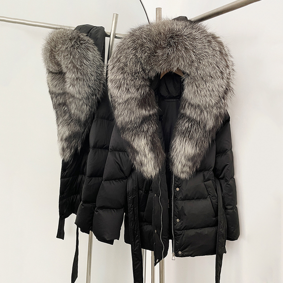 2025 Luxury Winter Large Natural Fox Fur Hooded 90% Goose Down Jacket Women Thickened Warm Coat Waterproof Belted Parkas