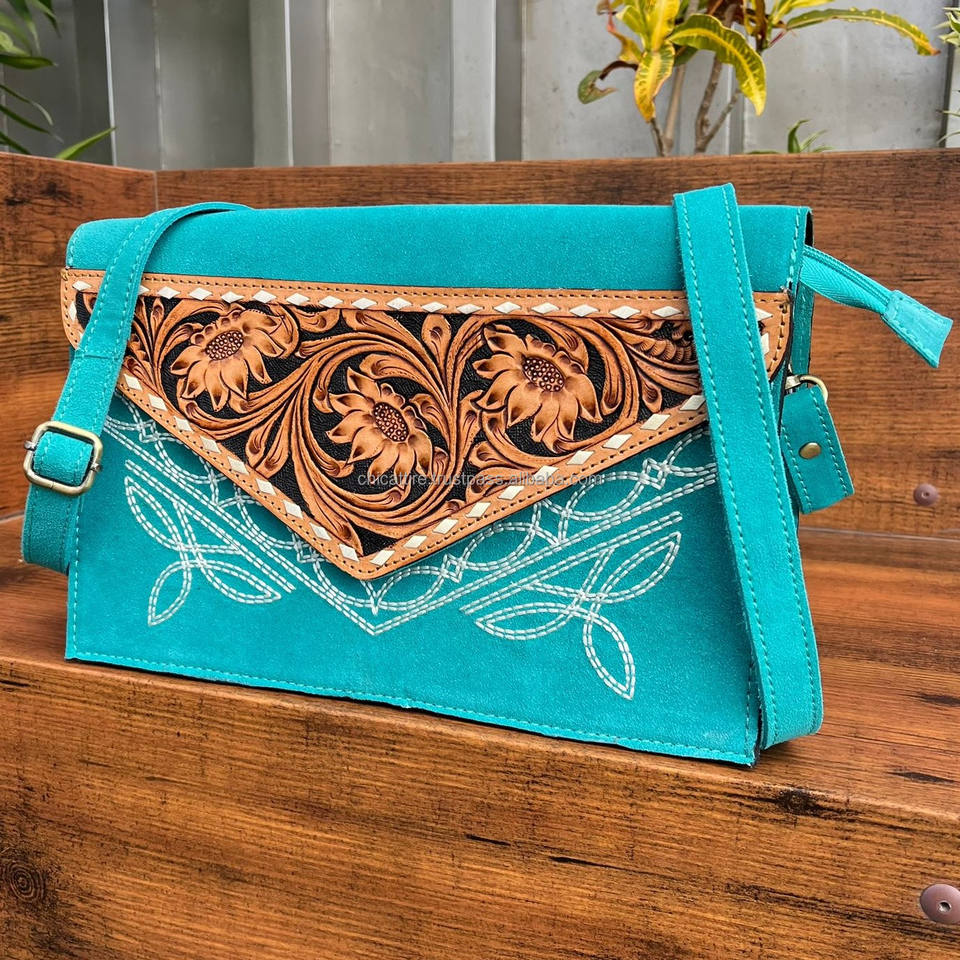 Product name:Hand Tooled Suede Leather Crossbody Envelope Bag