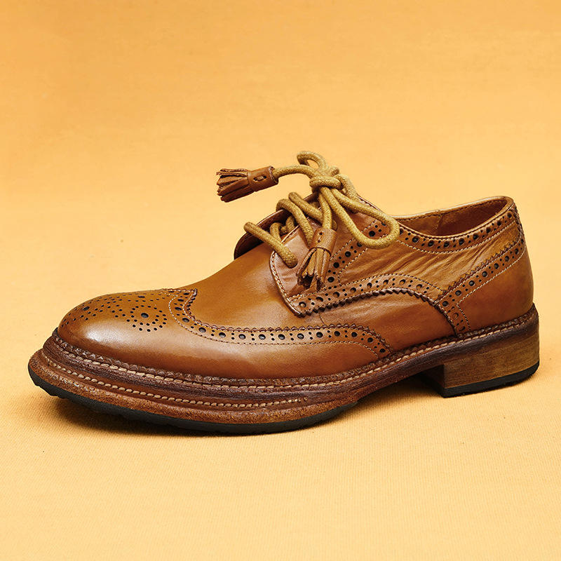 2025 Luxury business casual men's formal shoes genuine leather hand-customized Goodyear Brock leather shoes