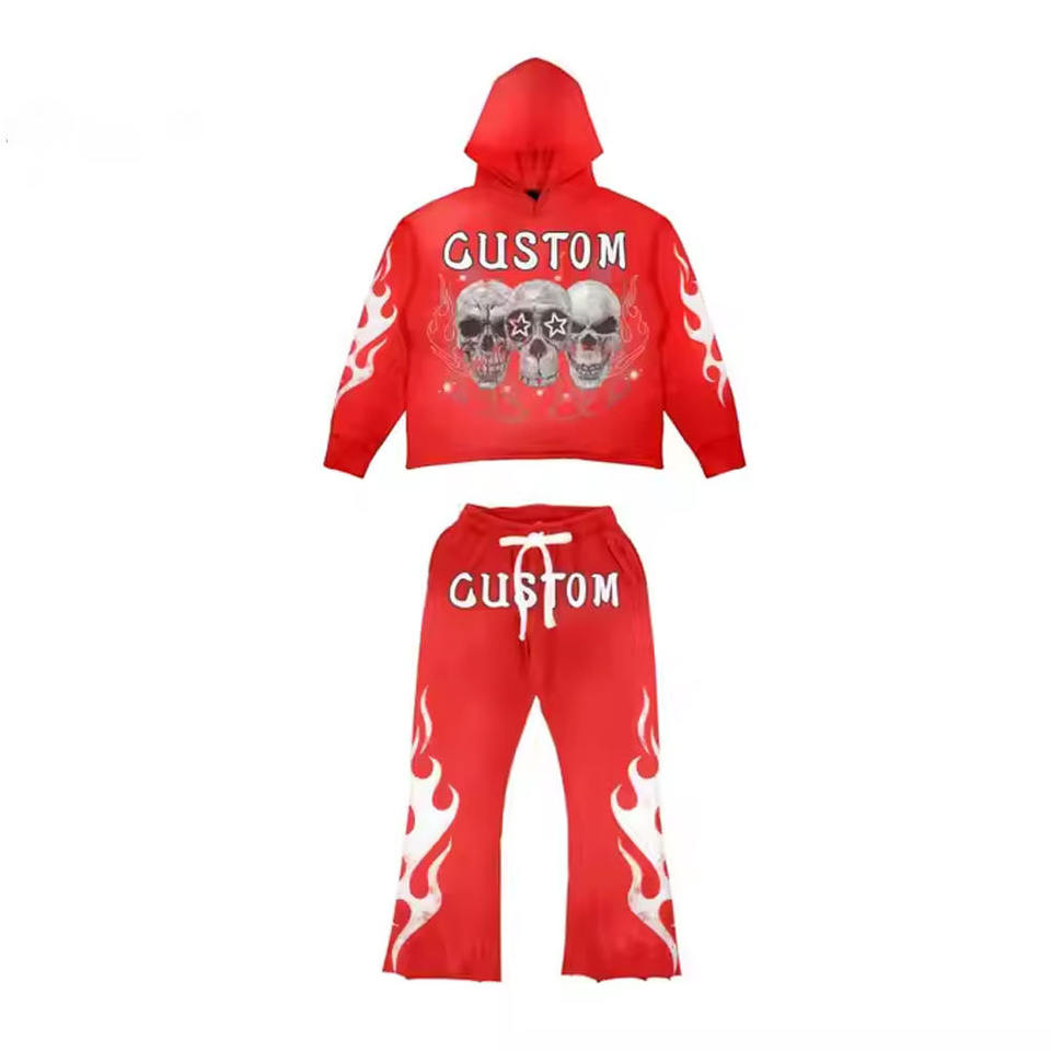 2025 Manufacturer Custom High Quality Custom Puff Print Hoodie 480gsm Hoodie Acid Wash Men Sweatsuit Fully Custom Sweatsuit