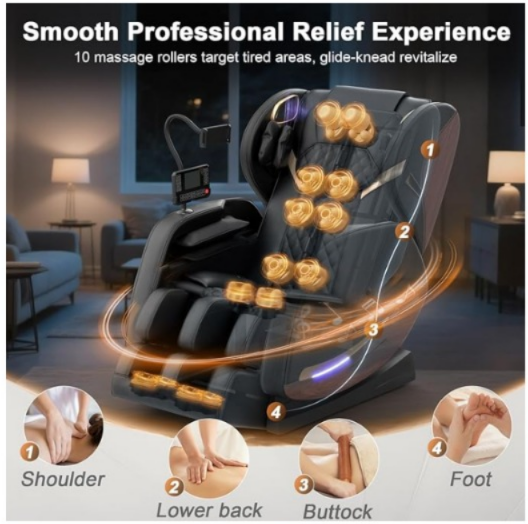 2025 Massage Chairs Full Body and Recliner with 10 Fixed Points, Zero Gravity, Wood Grain Leather, Foot Massage, Airbags