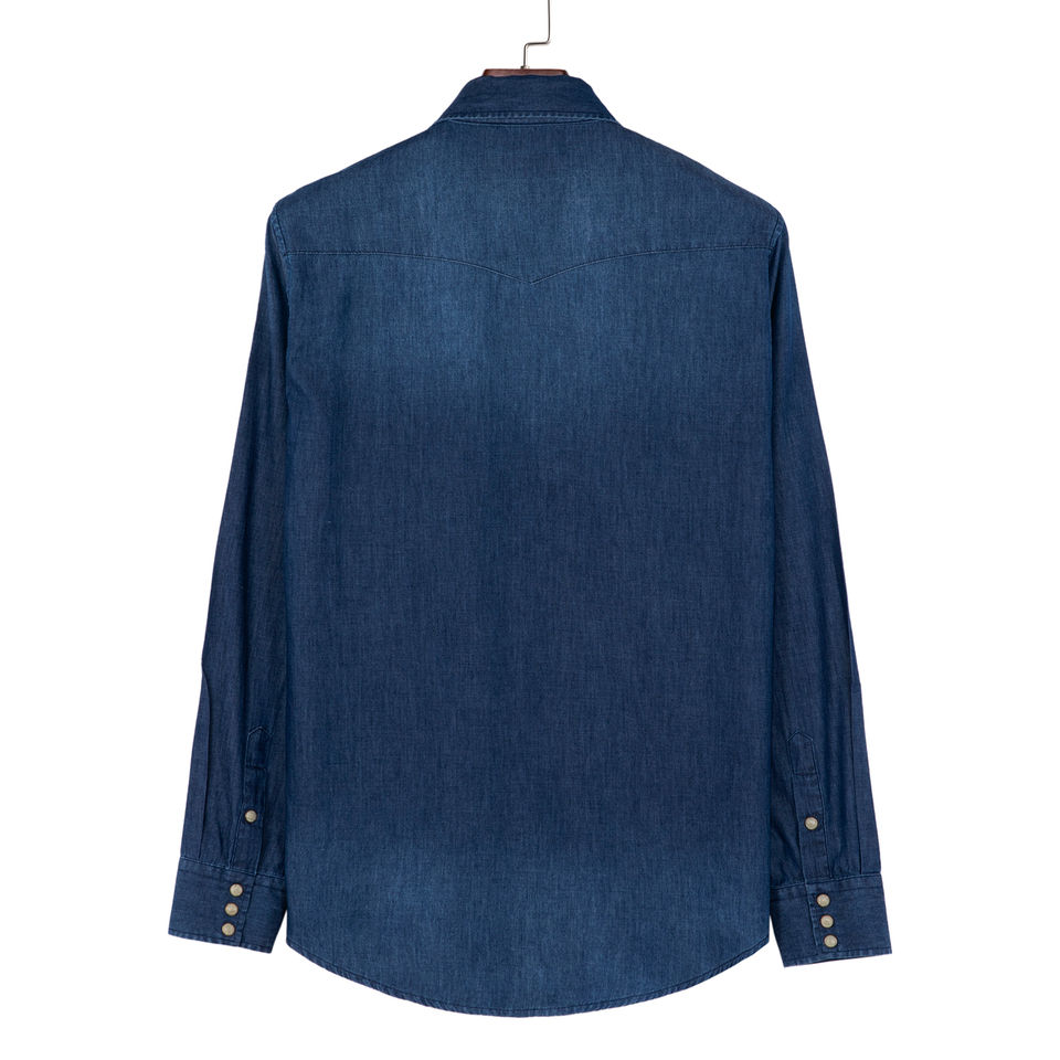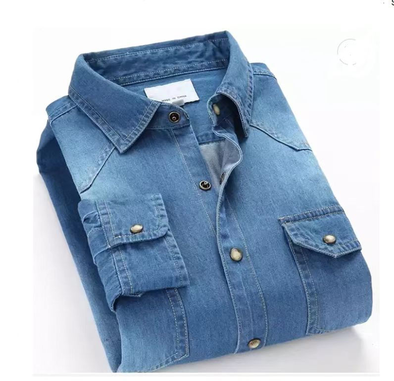 2025 Men Denim Shirts Long Sleeve Soft 100% Cotton Double Pockets Slim Slight Elastic Jeans Blue Tops Cowboy Clothing For Men's