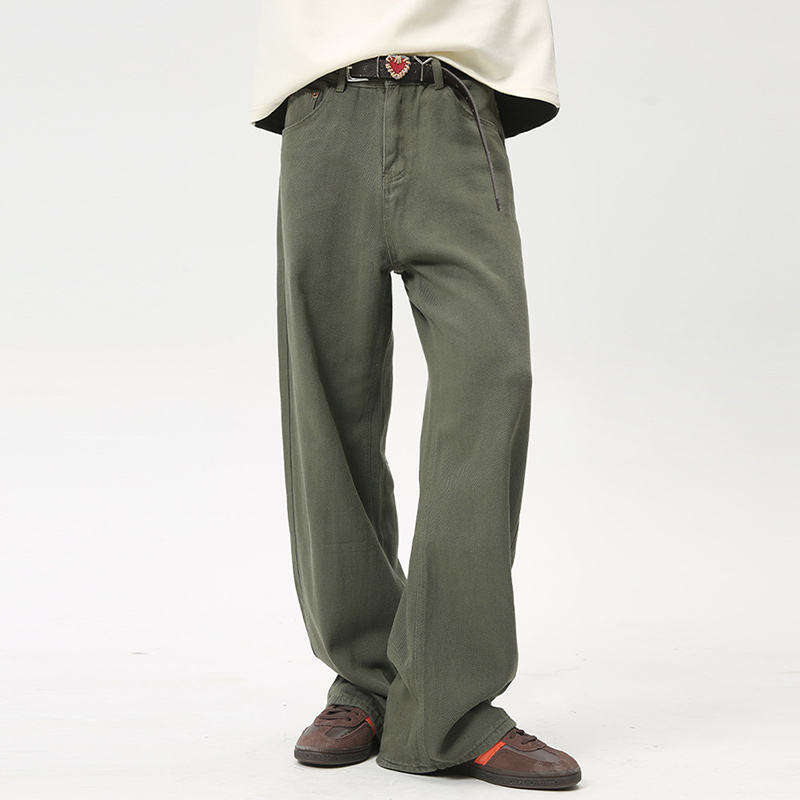 2025 Men Spring Summer Solid Color Straight Regular Wide Leg Breathable Formal Denim Jeans Vintage Washed