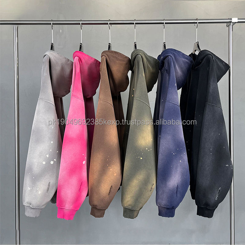 2025 Men's 450GSM Retro Streetwear Oversized Men Splash Ink Distress Ripped With Monkey Wash Spray men's hoodies/hoodies men