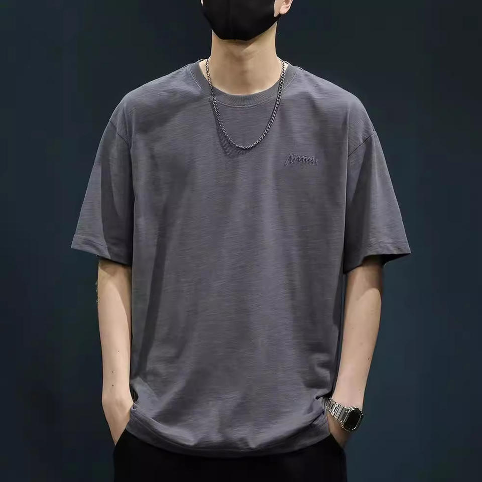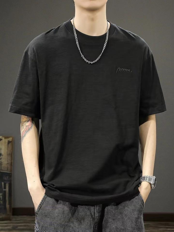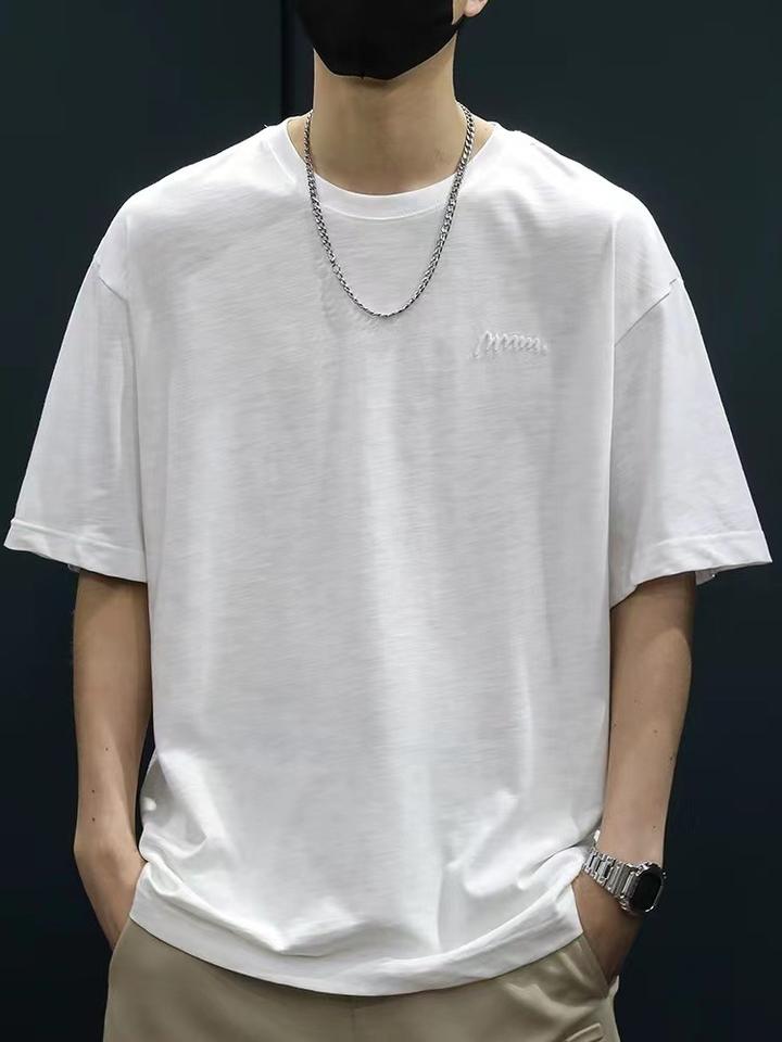 2025 Men's Bamboo Cotton Short-Sleeved T-Shirt Loose Fit Half-Sleeved Hip Hop Casual Print Summer Heavy Thermal Terry Large Size