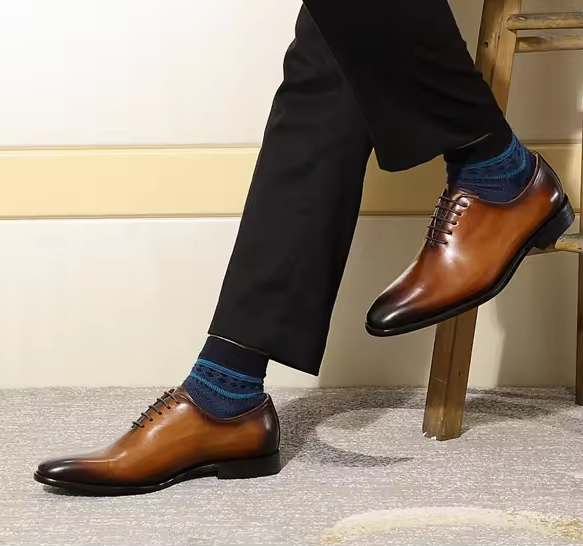 2025 Men's Business Casual Shoes Fashion Dress Sneakers Pointed Office Walking Oxford Leather Flat Wedding Shoes