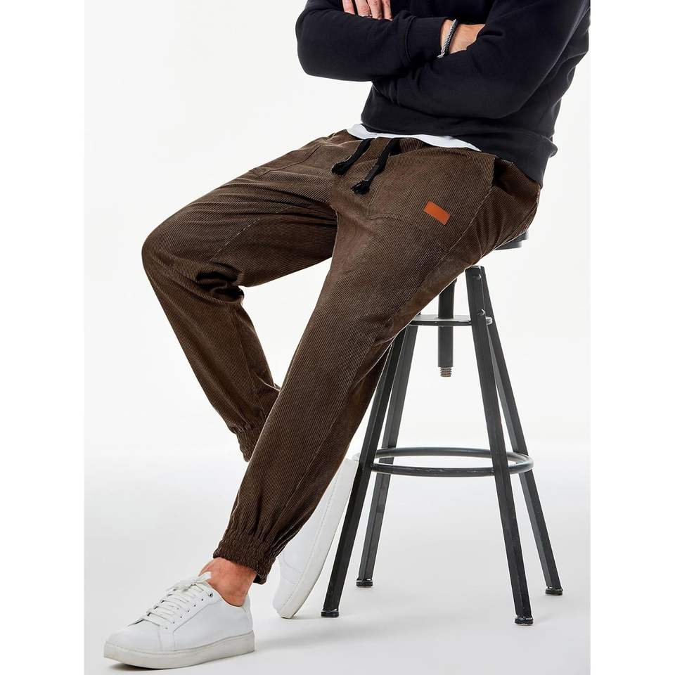 2025 Men's Casual Corduroy Cargo Pants 100% Cotton Drawstring Elastic Waist Baggy Tapered Sweatpants with Pockets