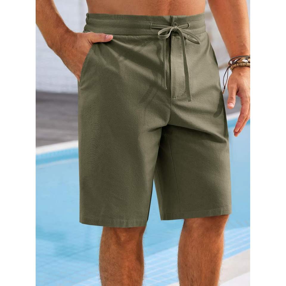 2025 Men's Casual Cotton Chino Shorts Elastic Waist Drawstring Pockets Summer Beach Flat Front Sizes XXS XS Featuring Logos