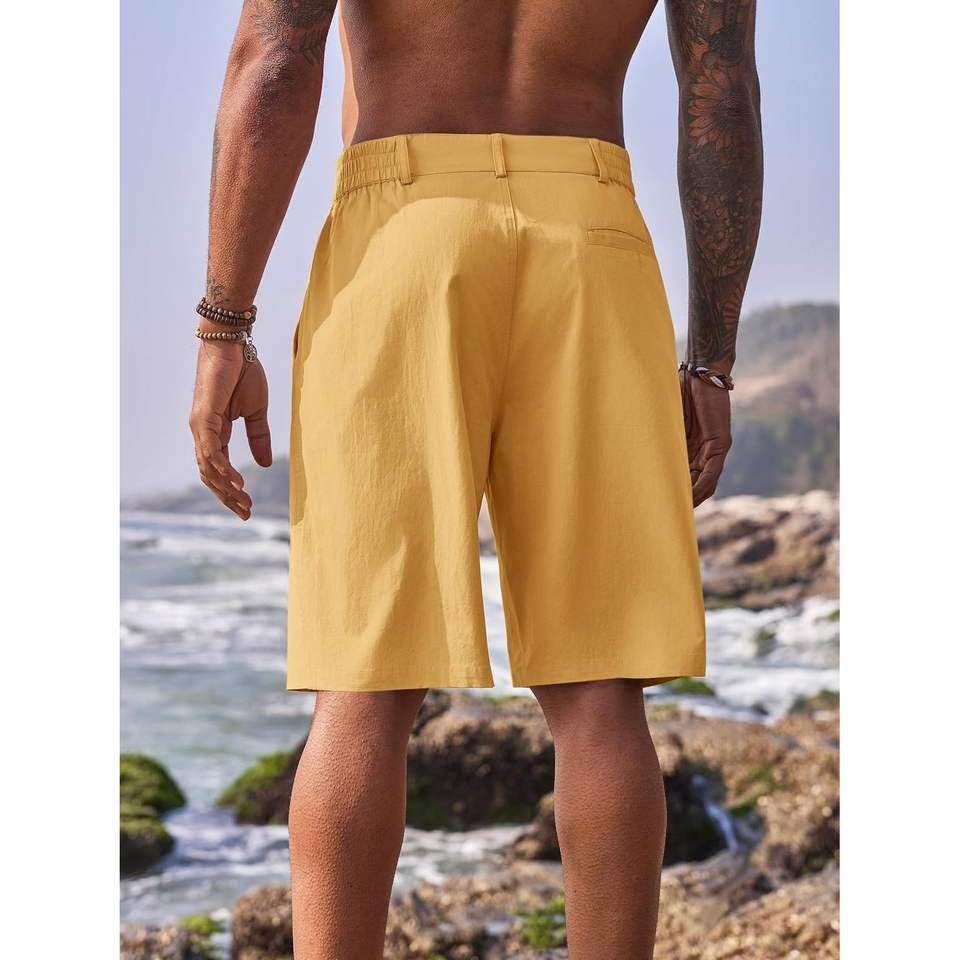 2025 Men's Casual Cotton Golf Shorts Flat Front Chino Elastic Waist Bermuda Pattern XS Size Logo Knitted Work Dress Shorts