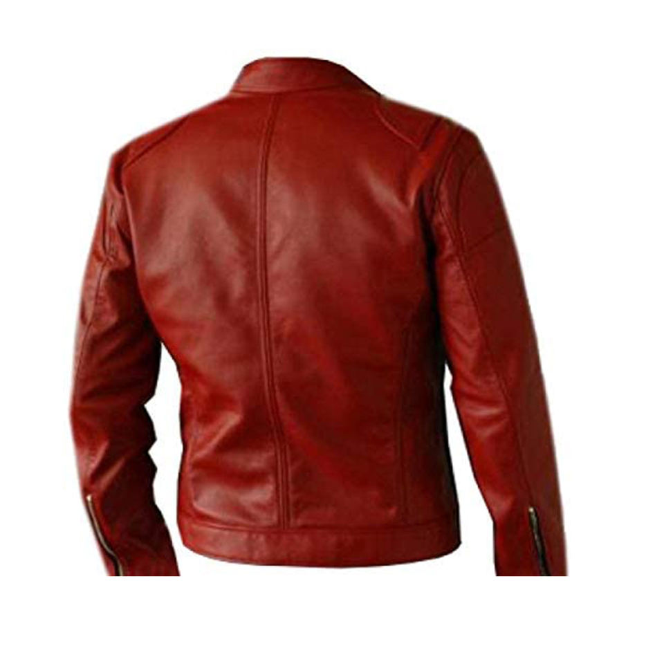 2025 Men's Casual Cow Skin PU Leather Jacket with Stand Collar Zip-up Long Sleeves High Quality Winter OEM jacket for men