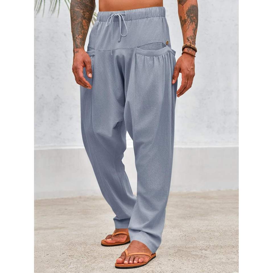 2025 Men's Casual Harem Pants Elastic Waist Cotton Drop Crotch Beach Yoga Wear Drawstring Sports Fitness Fitness Clothing