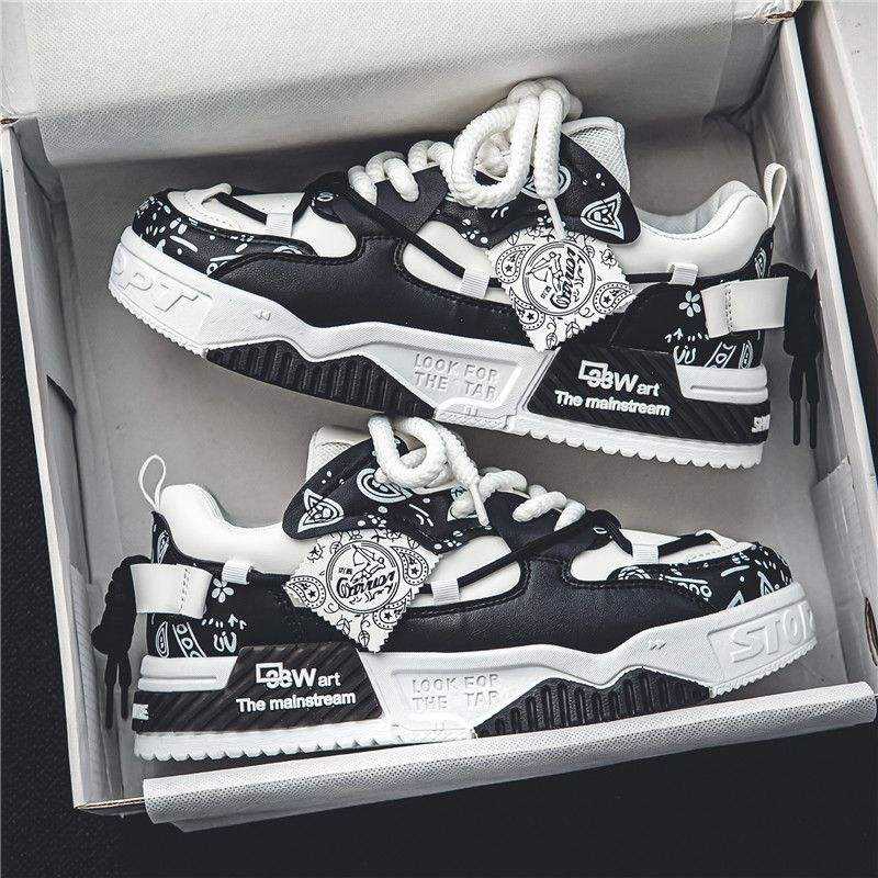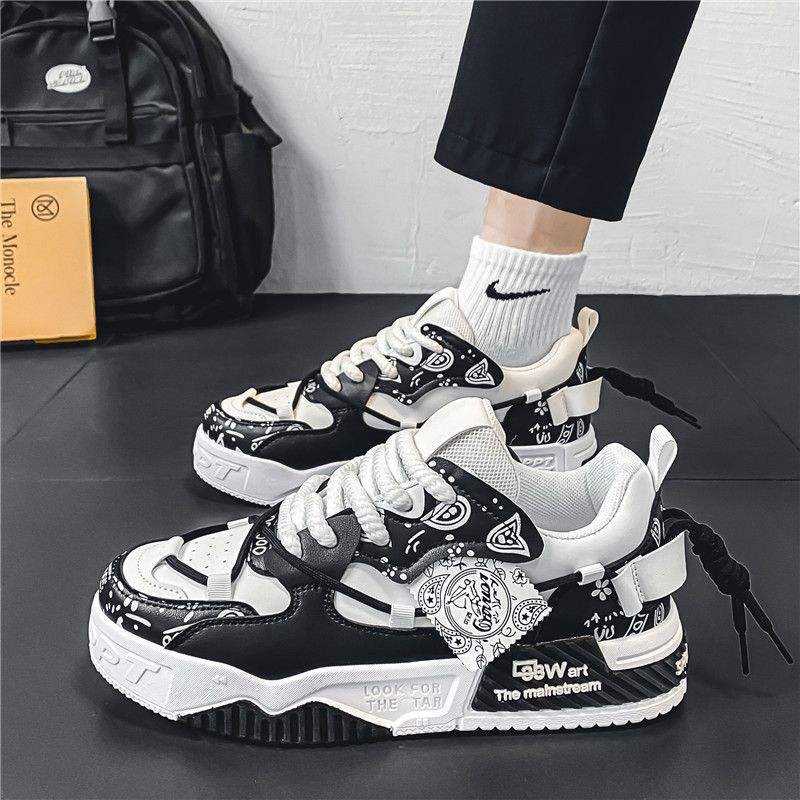 2025 Men's Casual Skateboarding Flat Shoes with Lace-up Closure Height Increases Thick Bottom Niche Original Bread Trend Design