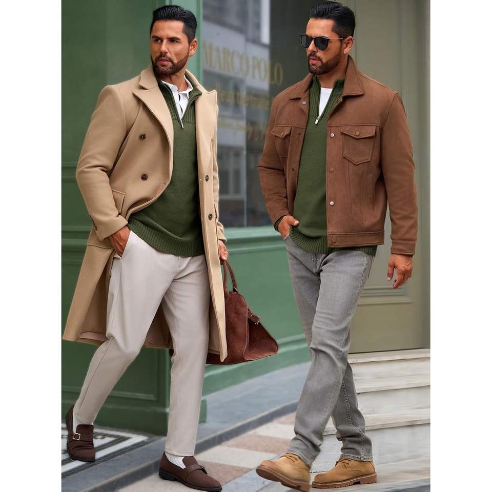 2025 Men's Casual Slim Fit Quarter Zip Sweater Long Sleeve Ribbed Knit for Polo with Mock Neck Autumn Cashmere Print