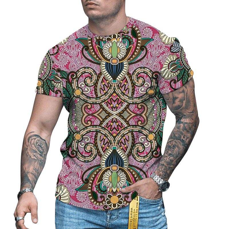 2025 Men's Casual T-shirts 3D Landscape Printed Short Sleeve Regular Fit 100% Cotton Knitted Fashionable Design