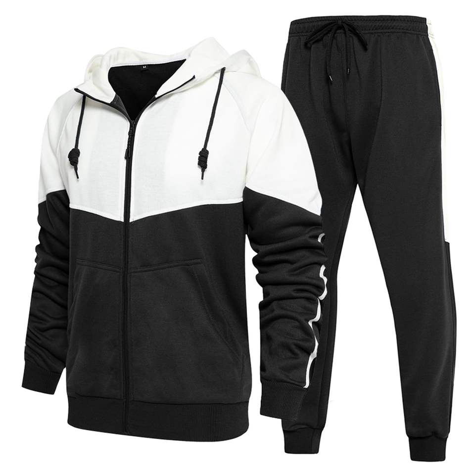2025 Men's Casual Two Piece Long Sleeve Patchwork Embroidery Color Breathable Hooded Jogger Sports Trousers Winter Tracksuits