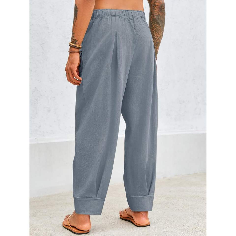 2025 Men's Cotton Linen Baggy Harem Pants Summer Beach Yoga Trousers with Elastic Waist Customizable Logo