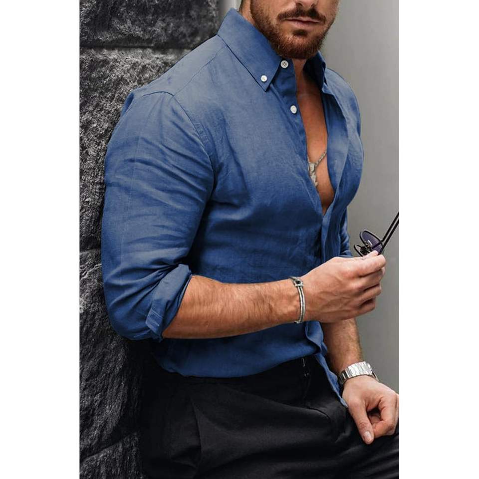 2025 Men's Cotton Linen Button-Down Dress Shirts Casual Stylish Long Sleeve Business Shirts Double Breasted Printed 6XL
