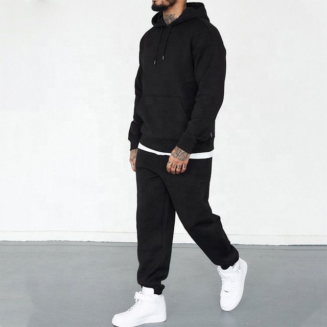 2025 Men's Custom Design Plush Cotton Fleece Oversize Tracksuits Drop Shoulder Hoodie Joggers Breathable Plus Size Winter Hooded