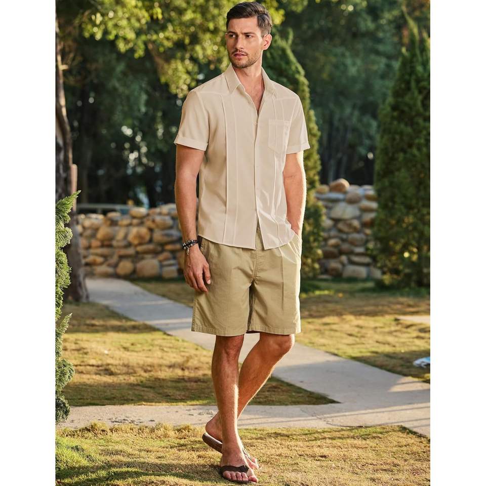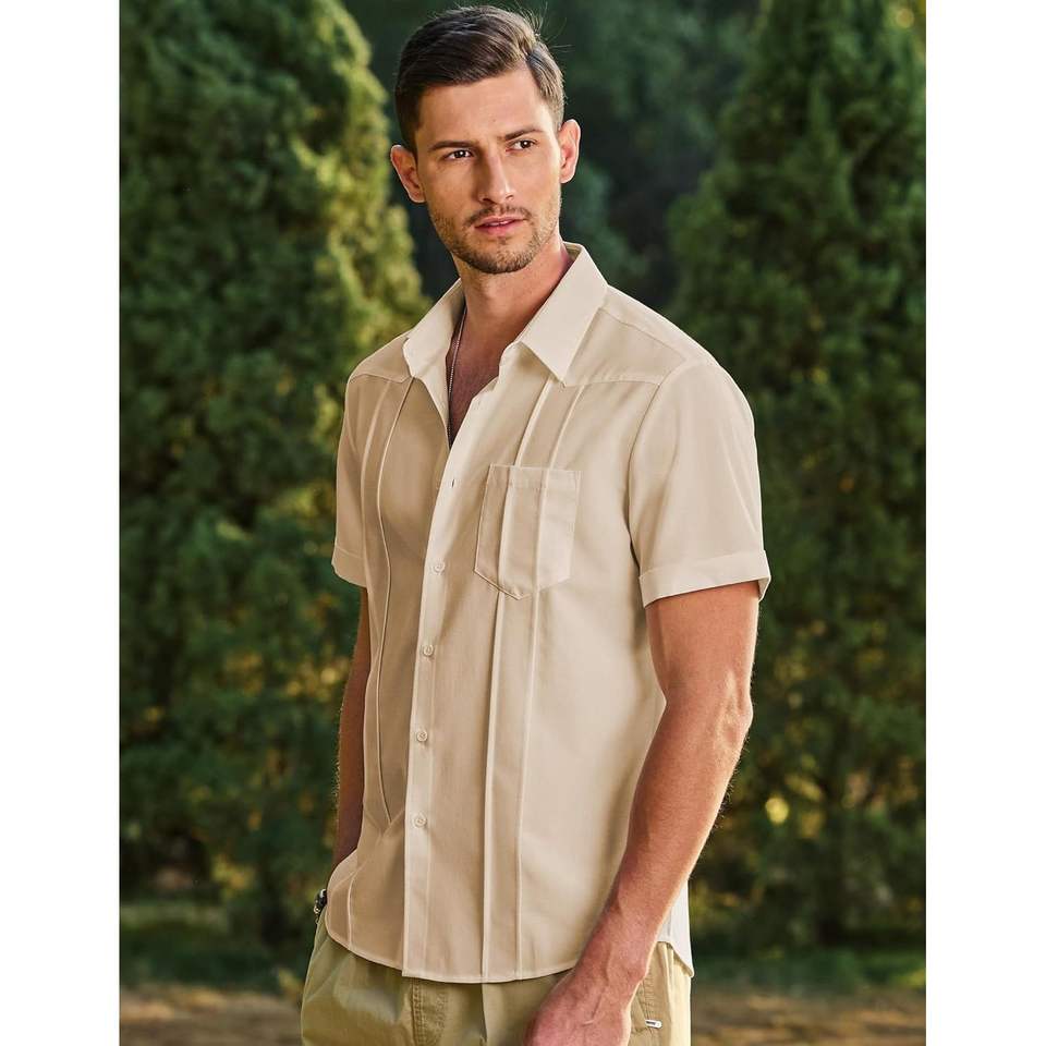 2025 Men's Floral Guayabera Shirt Casual Button Down Summer Beach Wedding Shirt with Pocket Short Sleeves