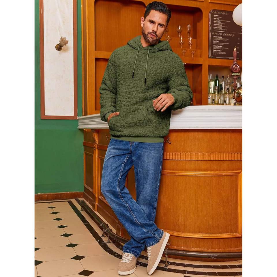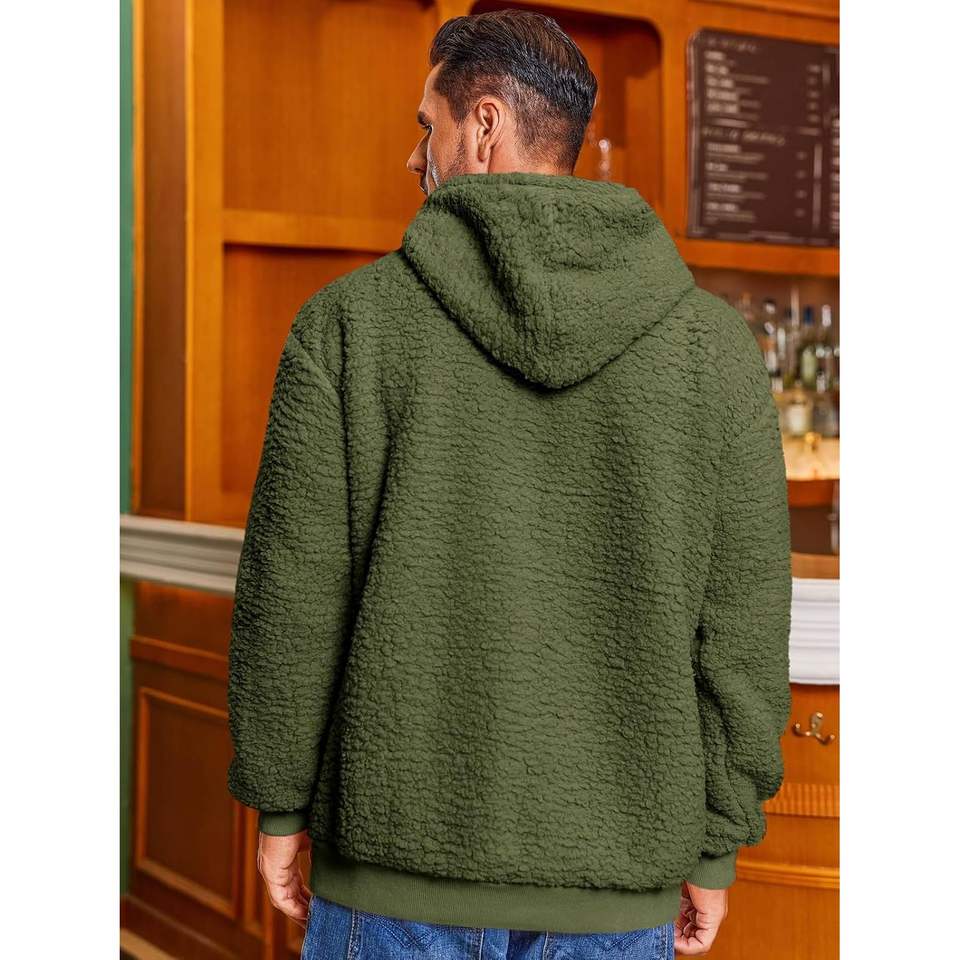 2025 Men's Fluffy Sherpa Hoodie Casual Long Sleeve Pullover with 3D Embroidery Winter Sweatshirt Anti-Wrinkle Sizes XXS to XL