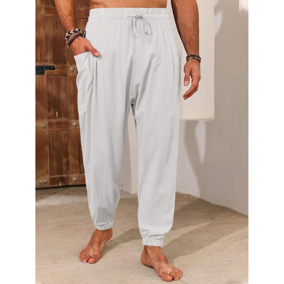 2025 Men's Harem Pants Casual Elastic Waist Drawstring Baggy Trousers 100% Cotton Summer Hippie Hip Hop Style Zipper Colored