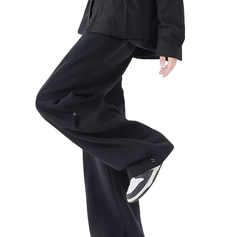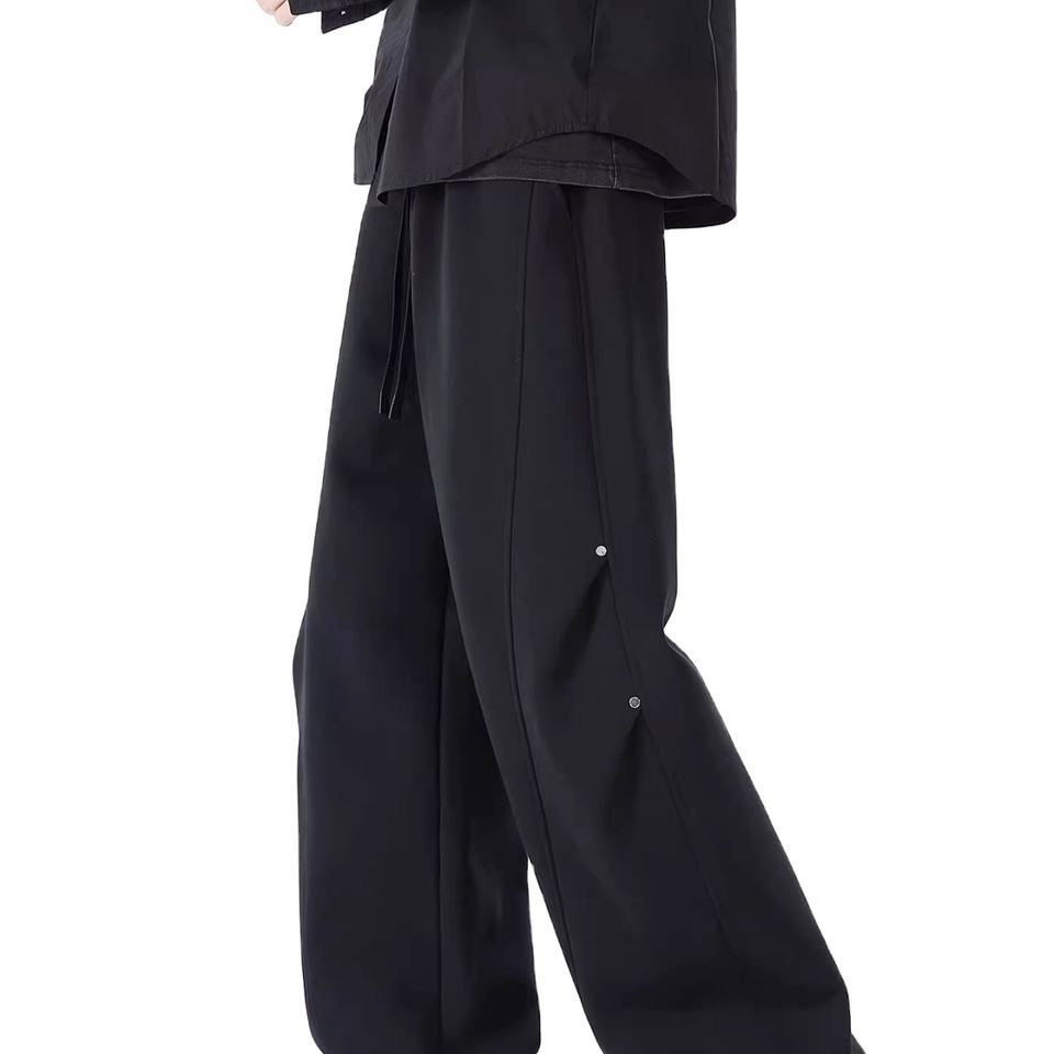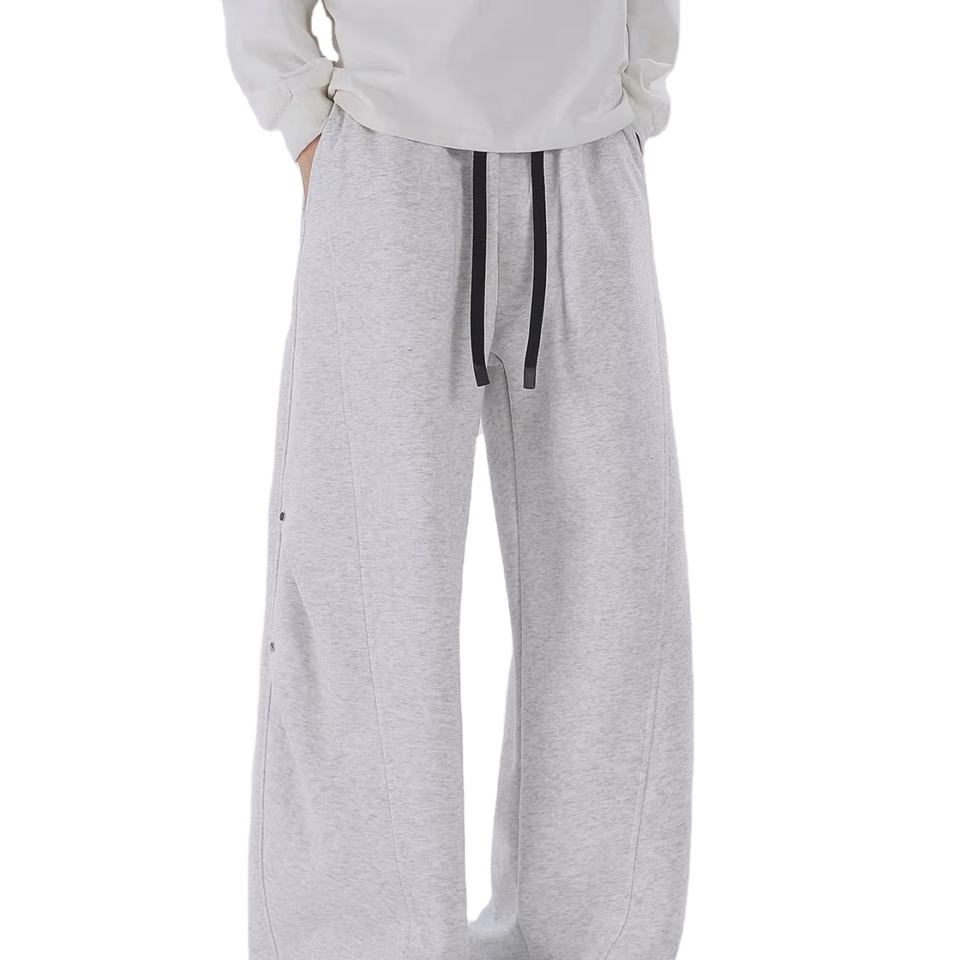 2025 Men's Heather Grey Wide Leg Sweatpants - Drawstring & Snap Button, Minimalist Casual | Customizable