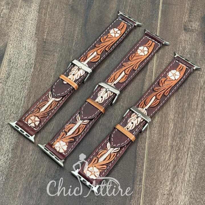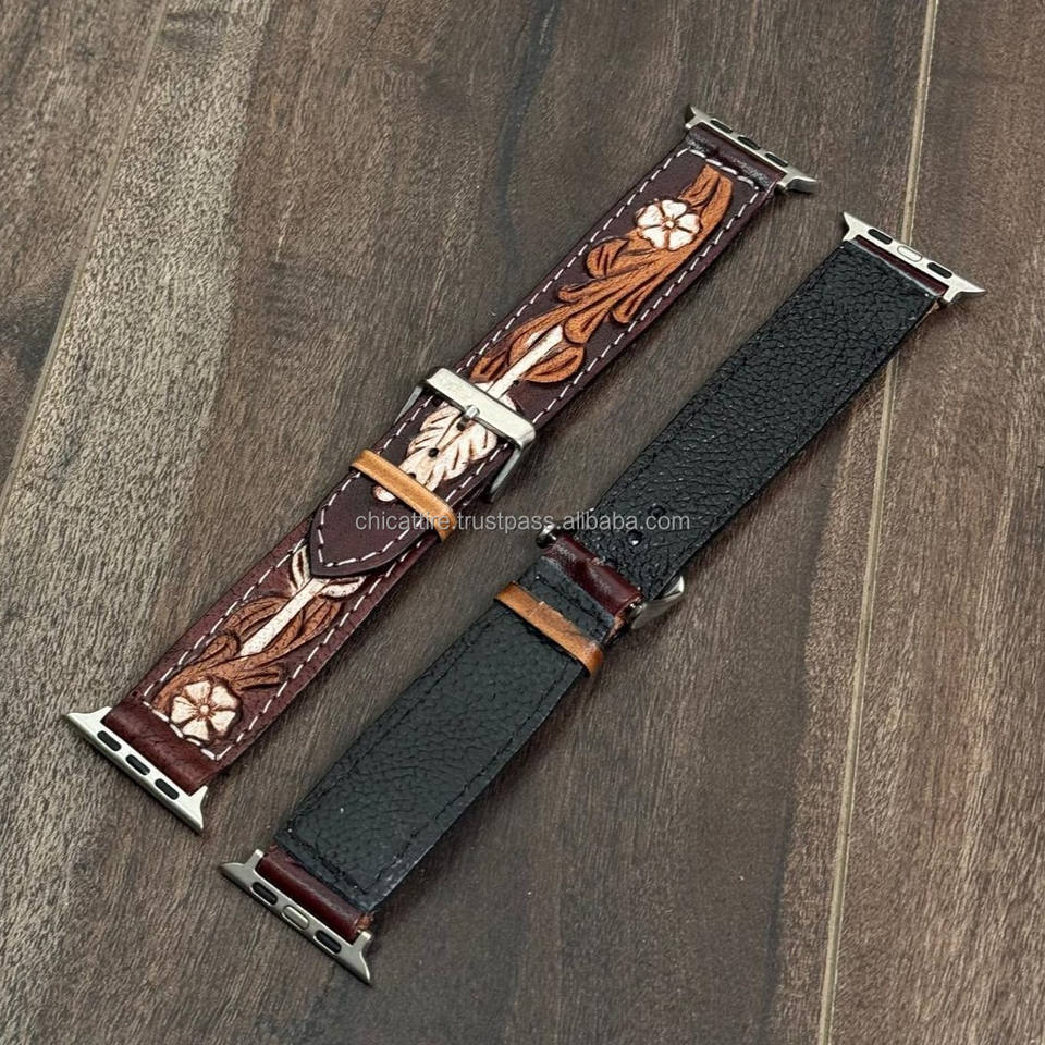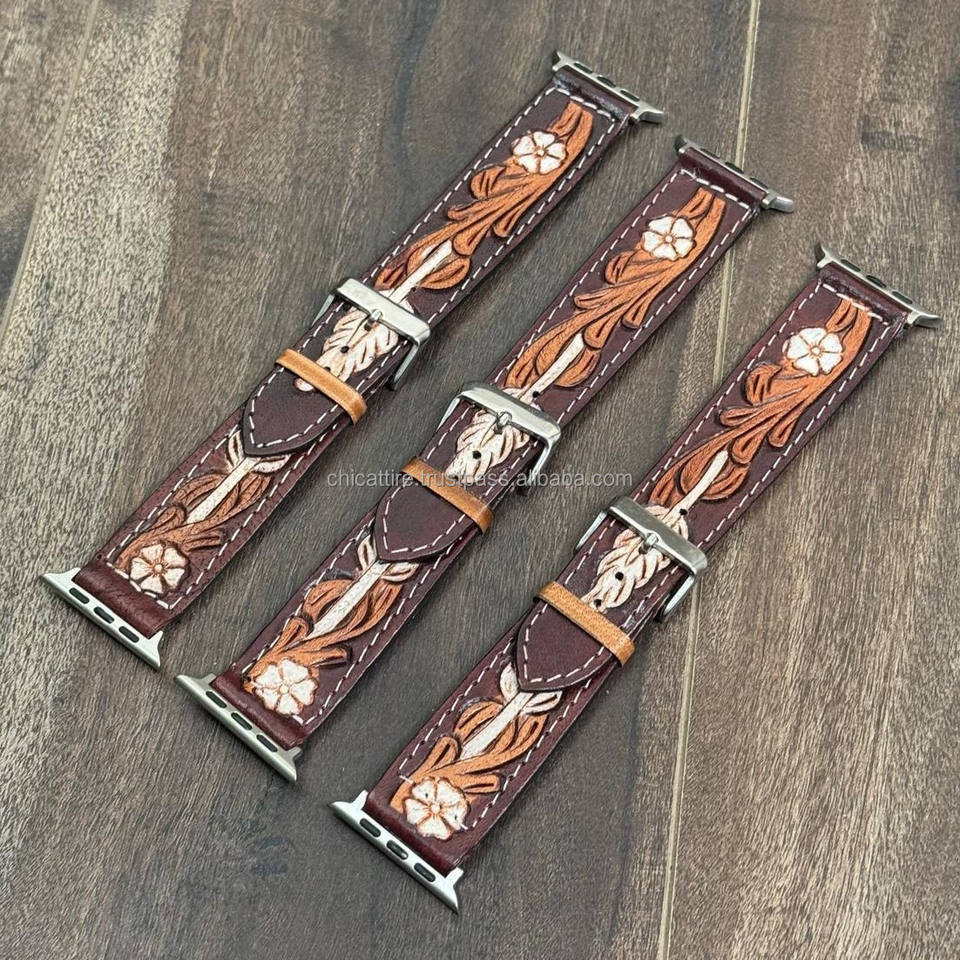 2025 Men's Luxury Floral Design Hand Tooled Leather Watch Strap Quick Release Pin Buckle Cowhide Leather Replacement Watch Bands