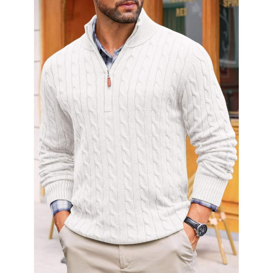 2025 Men's Quarter-Zip Cable Knitted Pullover Sweater Stand Collar Winter Casual Warm Twisted Knitwear Autumn Print Sweaters