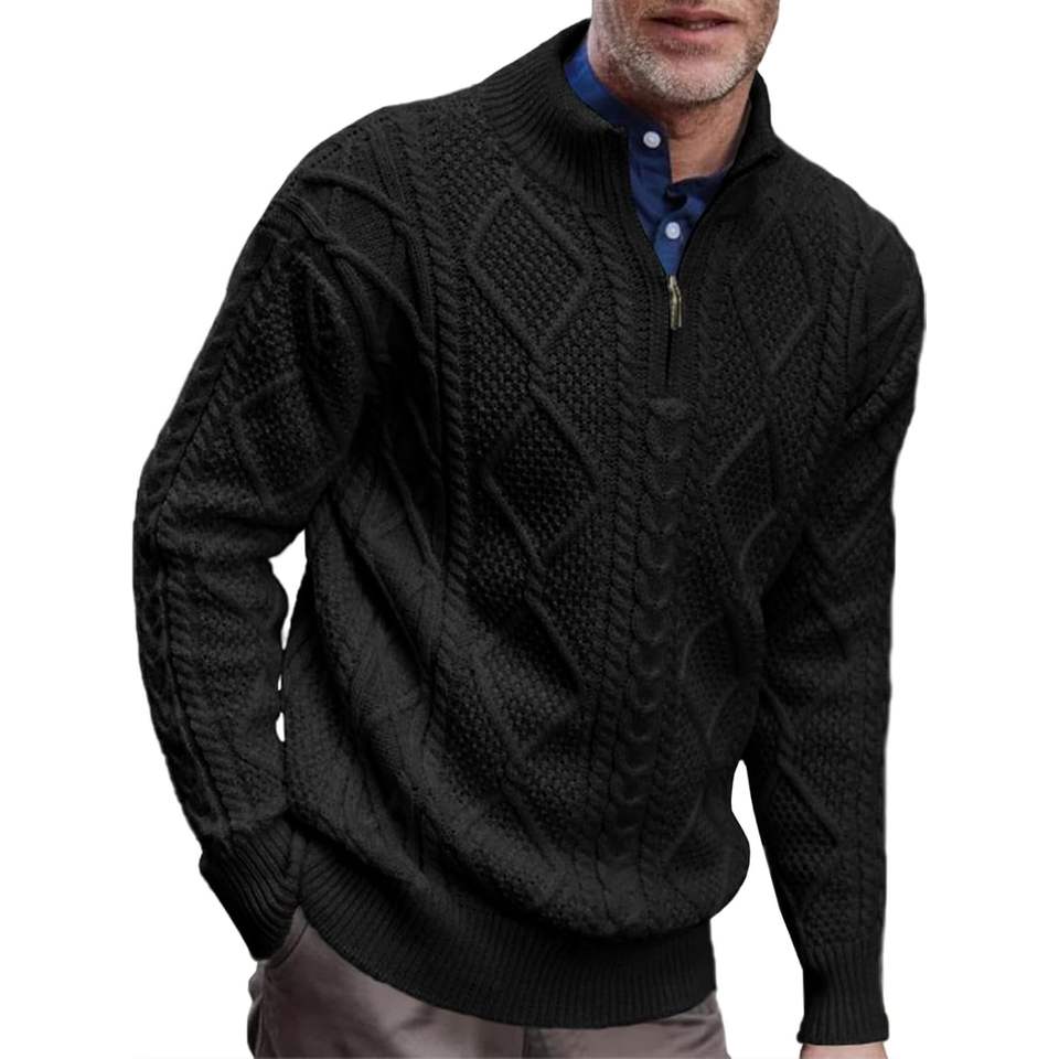 2025 Men's Quarter-Zip Soft Casual Thermal Sweater Cable Knitted Stand Collar Pullover for Autumn Warm Comfortable Knitwear