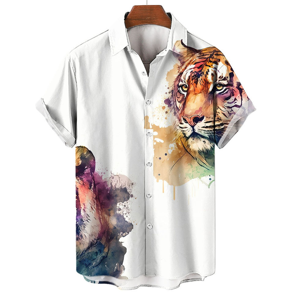 2025 Men's Retro Print Short Sleeve Formal Men's Short Four-Way Stretch Cotton Button Collar Breathable Stylish for Summer