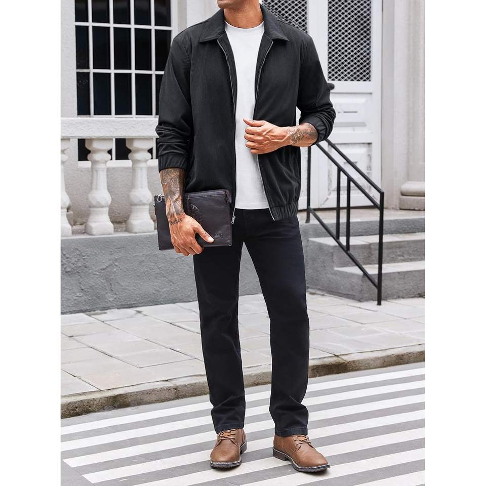 2025 Men's Reversible XS Size Corduroy Jacket Fall Casual Bomber Style Ribbed Zippered Standing Collar Vintage Outwear Coat