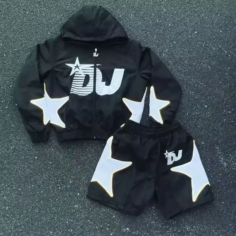2025 Custom Two-Piece Women's Windbreaker Shorts Jacket Sets Heavyweight Solid Reversible Eco-Friendly Polyester/Cotton Quick
