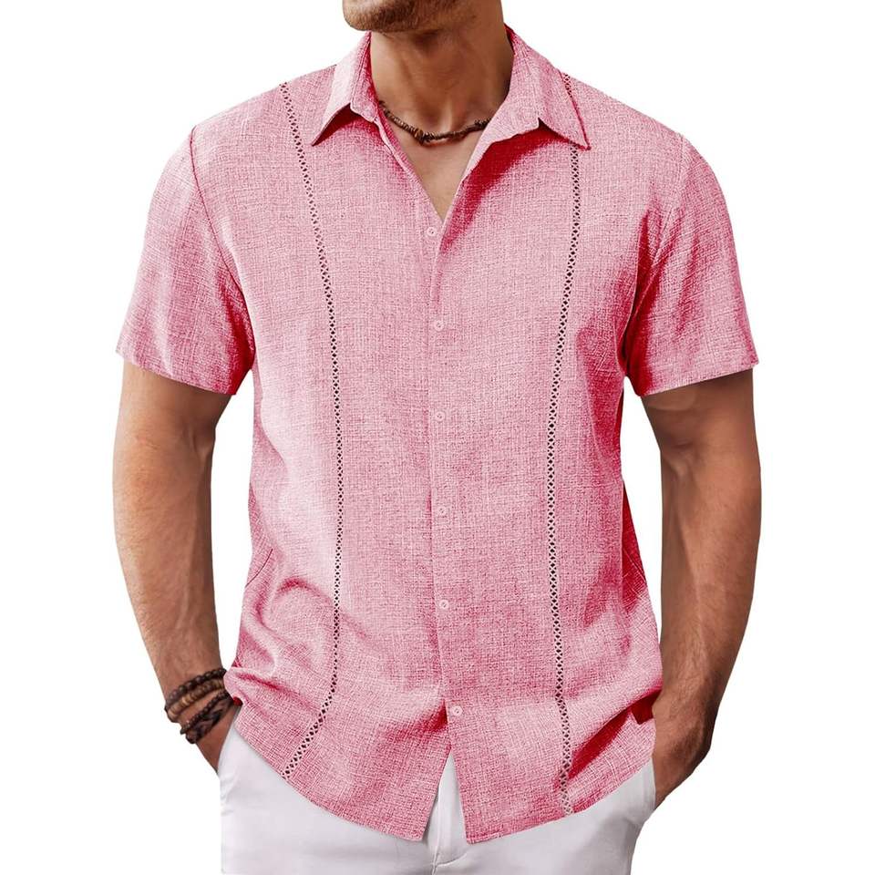2025 Men's Short Sleeve Guayabera Shirt 100% Cotton Casual Linen Tops Cuban Buttons Embroidered Design for Summer Vacation