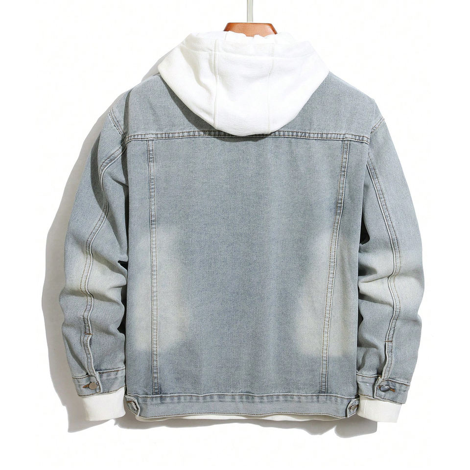 2025 Men's Vintage Winter Light Wash Denim Jacket with Hoodie Casual Streetwear Waterproof Windproof