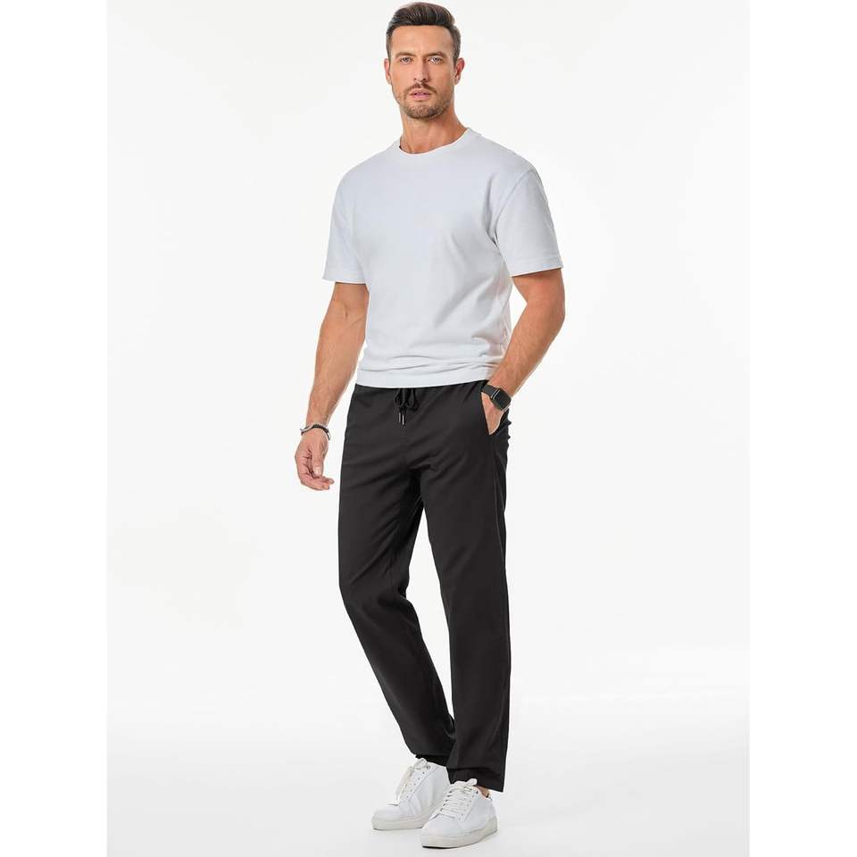2025 Men's XL Casual Cotton Twill Chino Pants Formal Style with Drawstring Elastic Waist Pockets Colored Wash Straight Pattern
