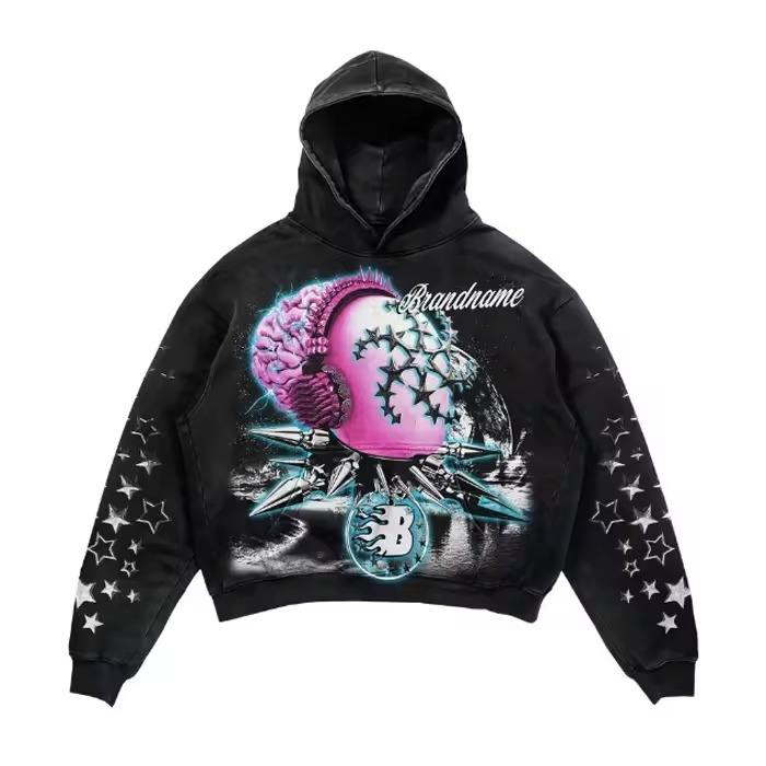 2025 Mens Oversized Street Hoodie Vintage Wash, 3D Puff Printing