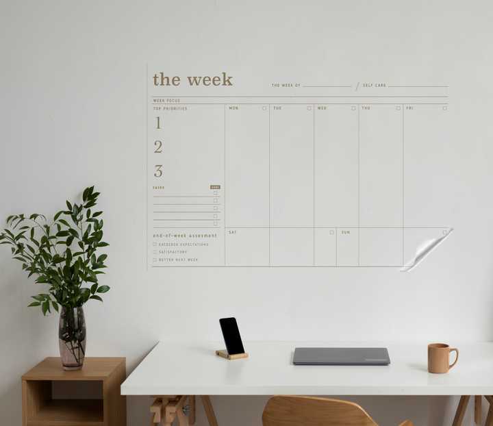 2025 Model-12 Weekly Planner Organizer Reusable Dry-Erase PET Magnetic Wood Whiteboard with Static Electricity Holding Features