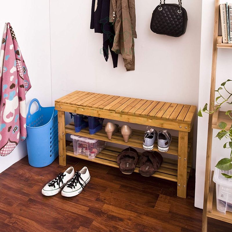 2025 Modern Bamboo Shoe Rack Bench 90*29cm for Home Storage Living Room Furniture