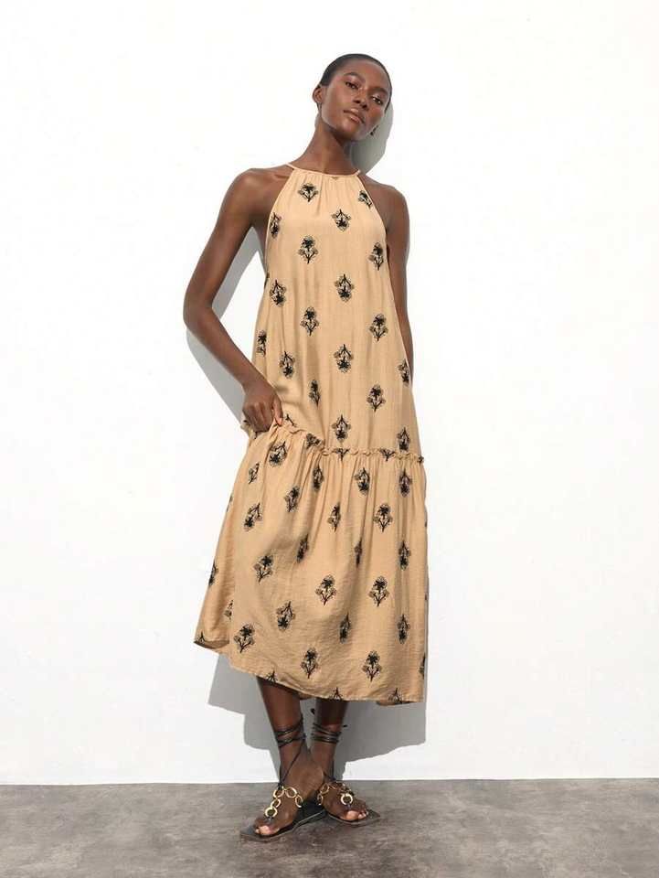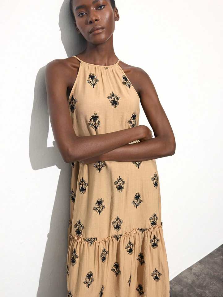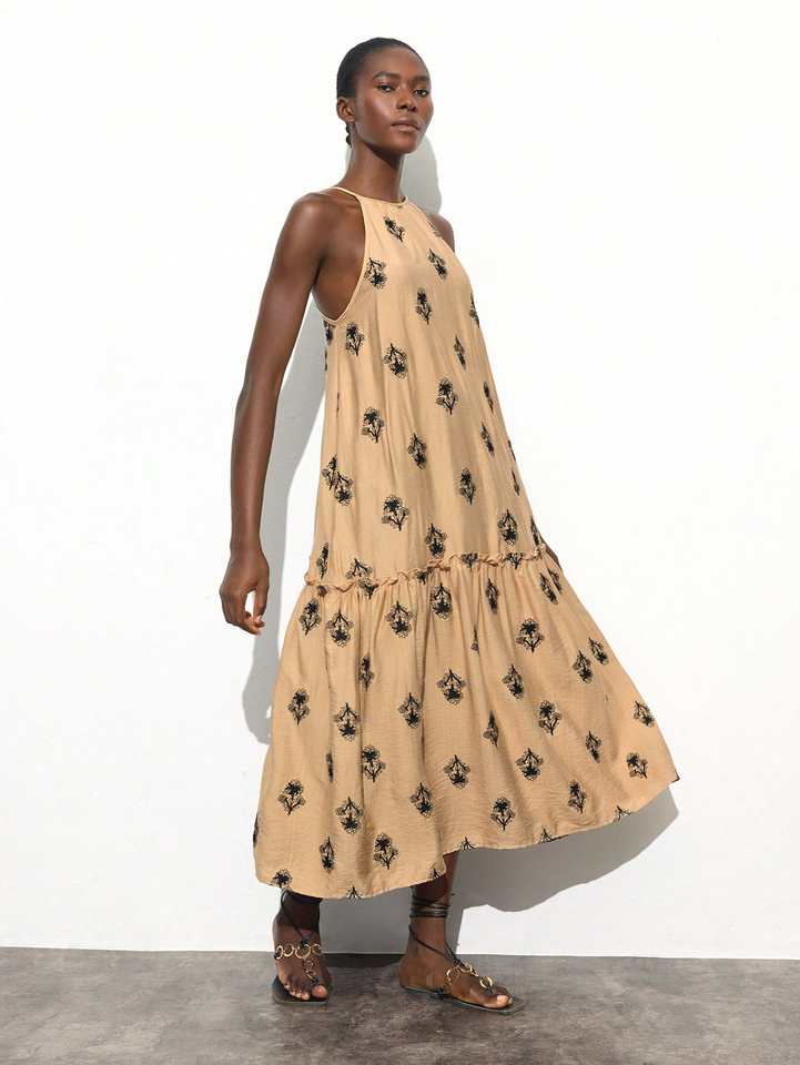 2025 Modern Design Boho Dress Women Maxi Dresses Short Sleeve Machine Embroidered Woven 100% Cotton Elegant Casual Bulk Rates
