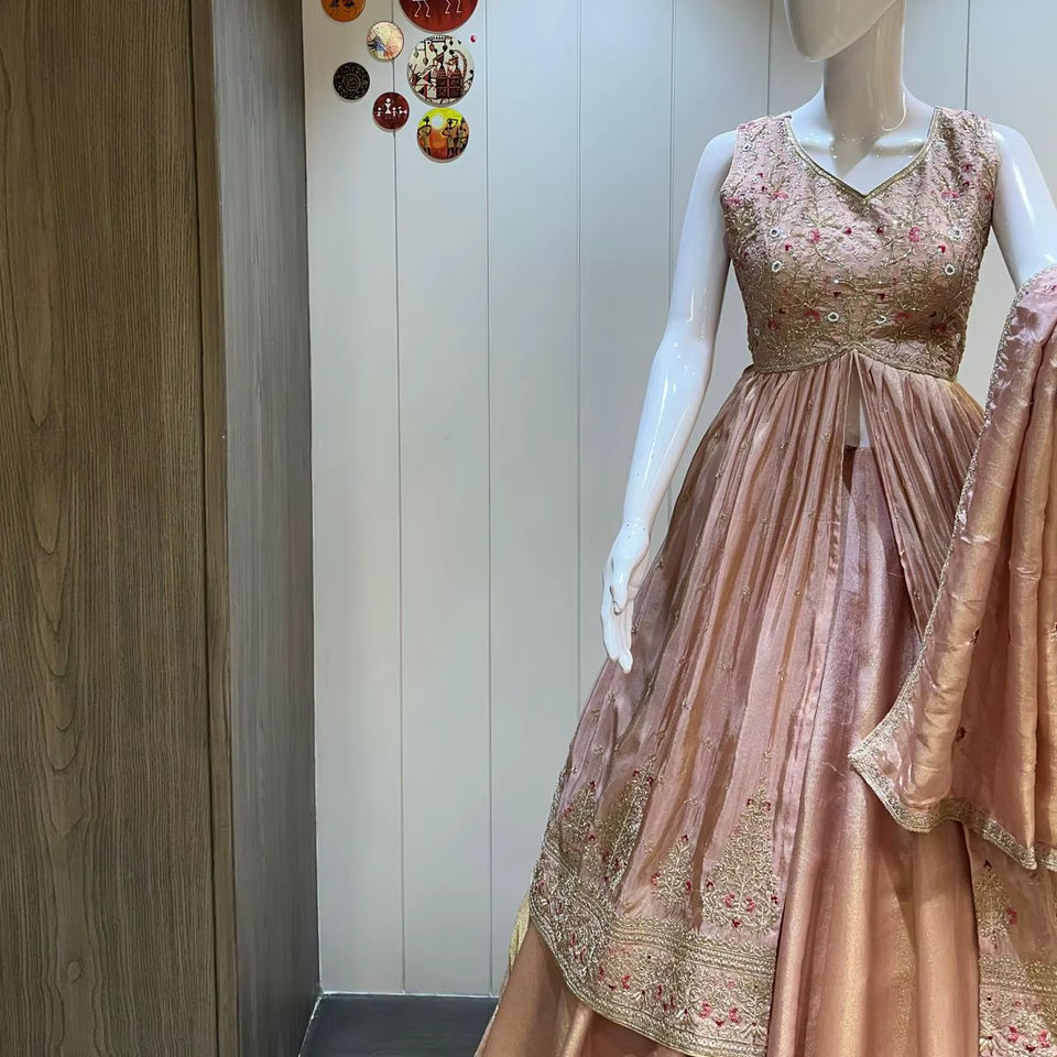 Product Name:Pure tissue silk chaniya with long jacket concept crop top