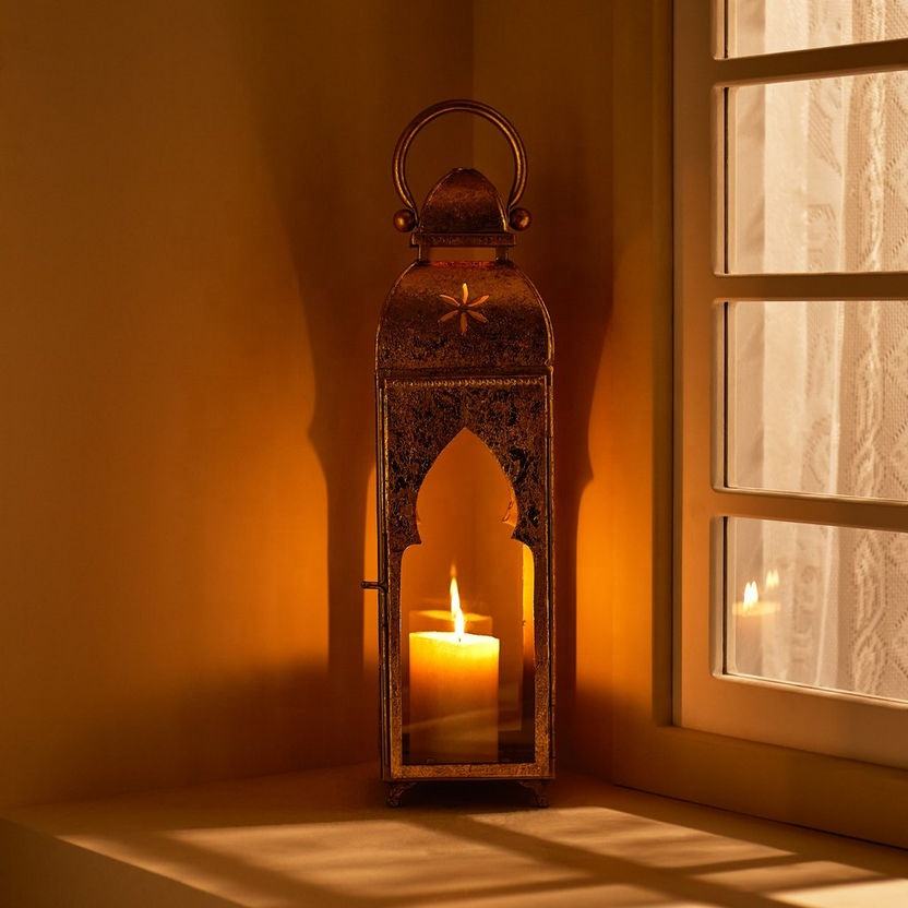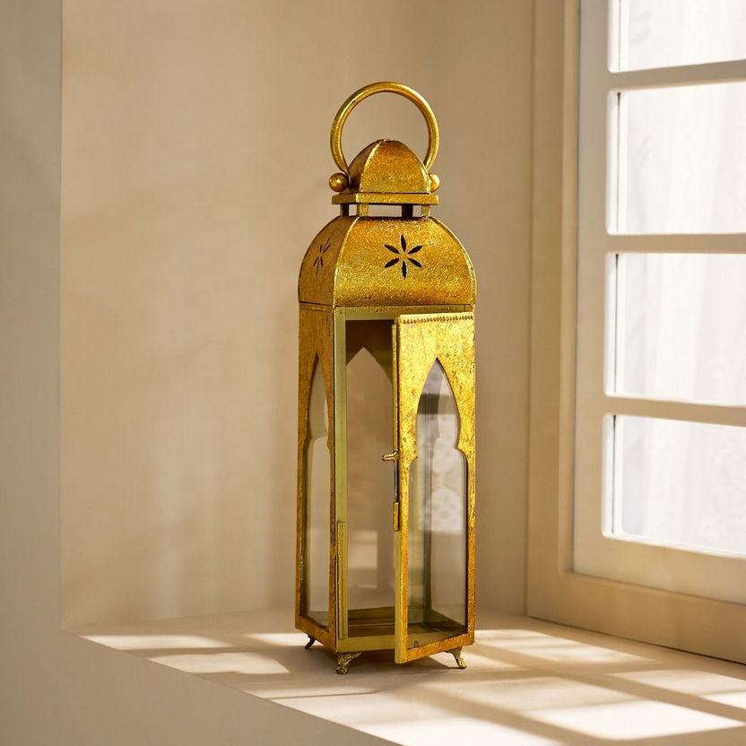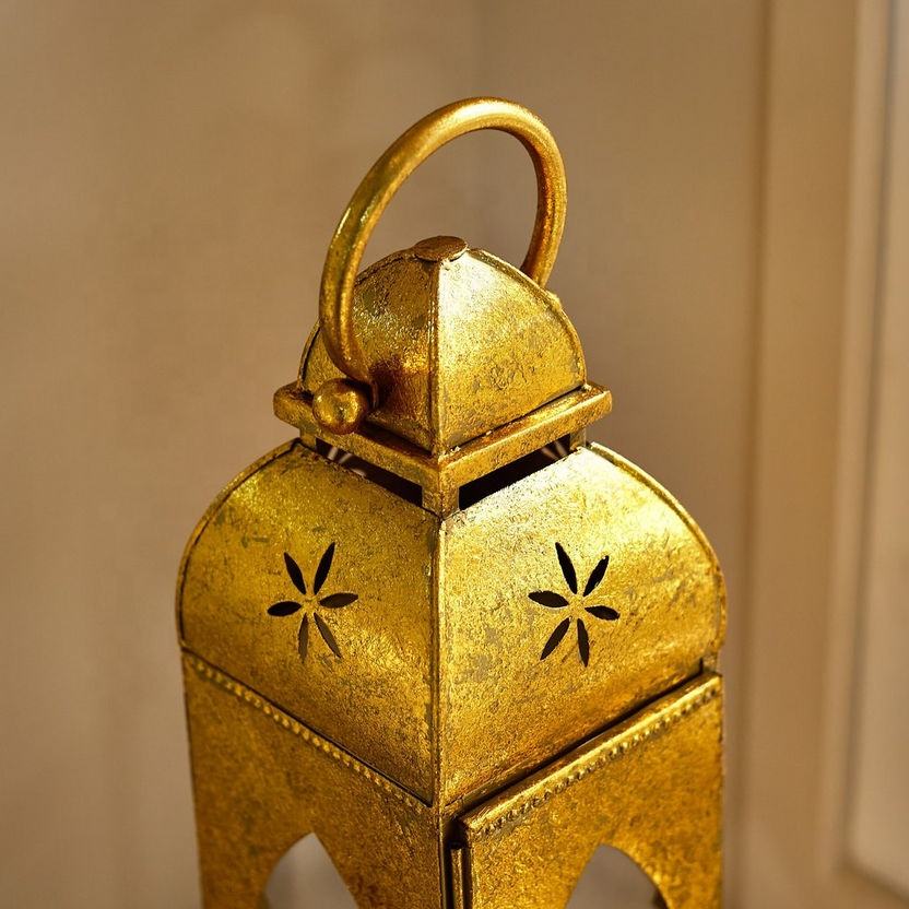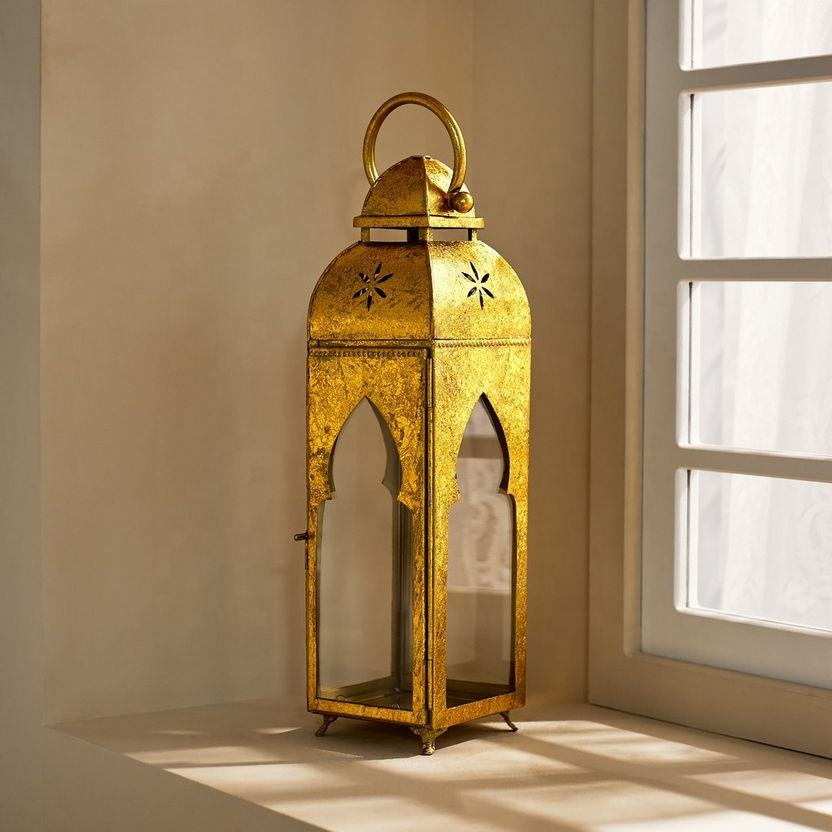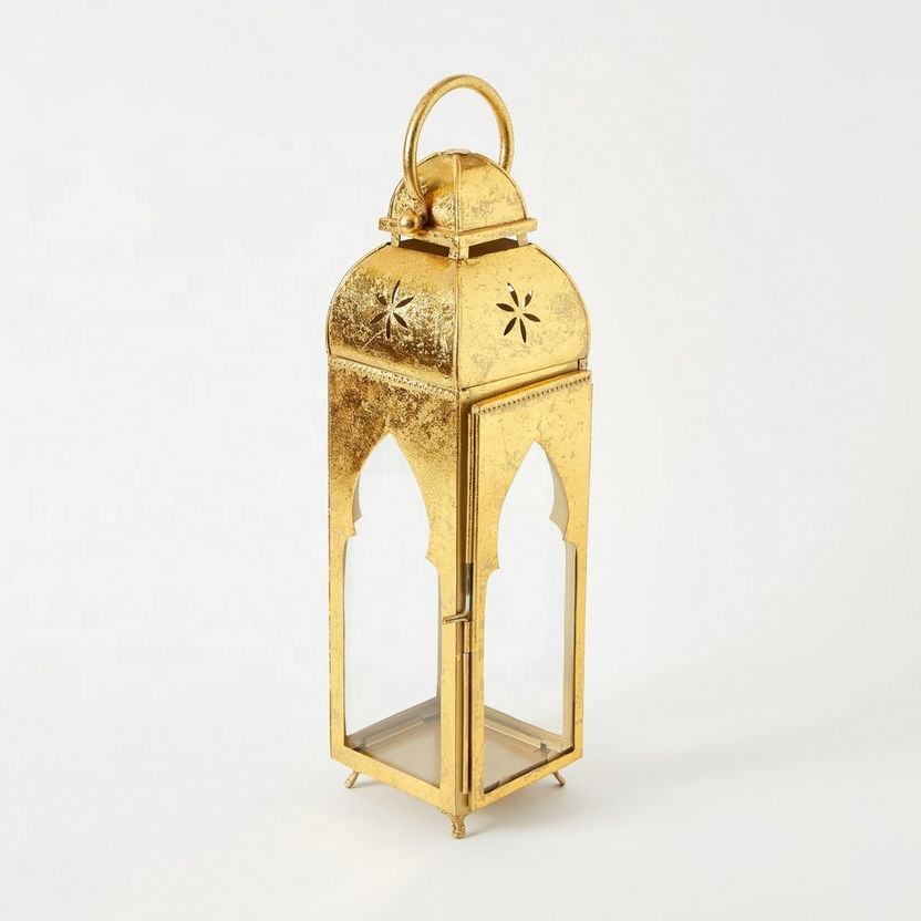 2025 Modern Gold Moroccan Metal Candle Holder Lantern for Floor and Table Christmas Home Decoration Handmade Square Design